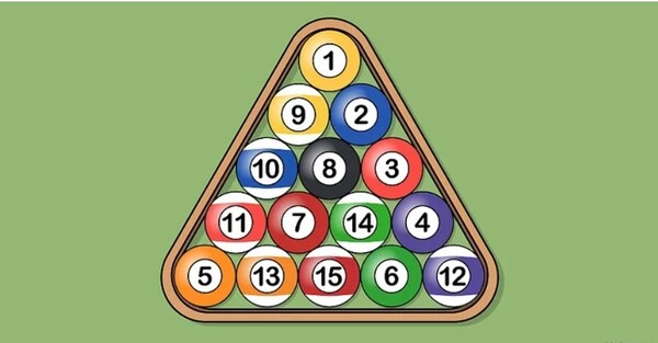 - Ở hai góc dưới của khung, bạn cần có một bi màu số 2-7 và một bi sọc số 9-15 bất kỳ, xen kẽ nhau.